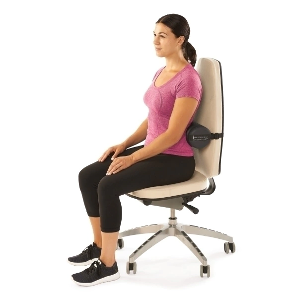 O uso regular do The Original McKenzie® Lumbar Roll™ ajuda a eliminar dores nas costas causadas por má postura ao sentar, fornecendo o apoio adequado para manter a curvatura correta da sua coluna, sem esforço muscular.